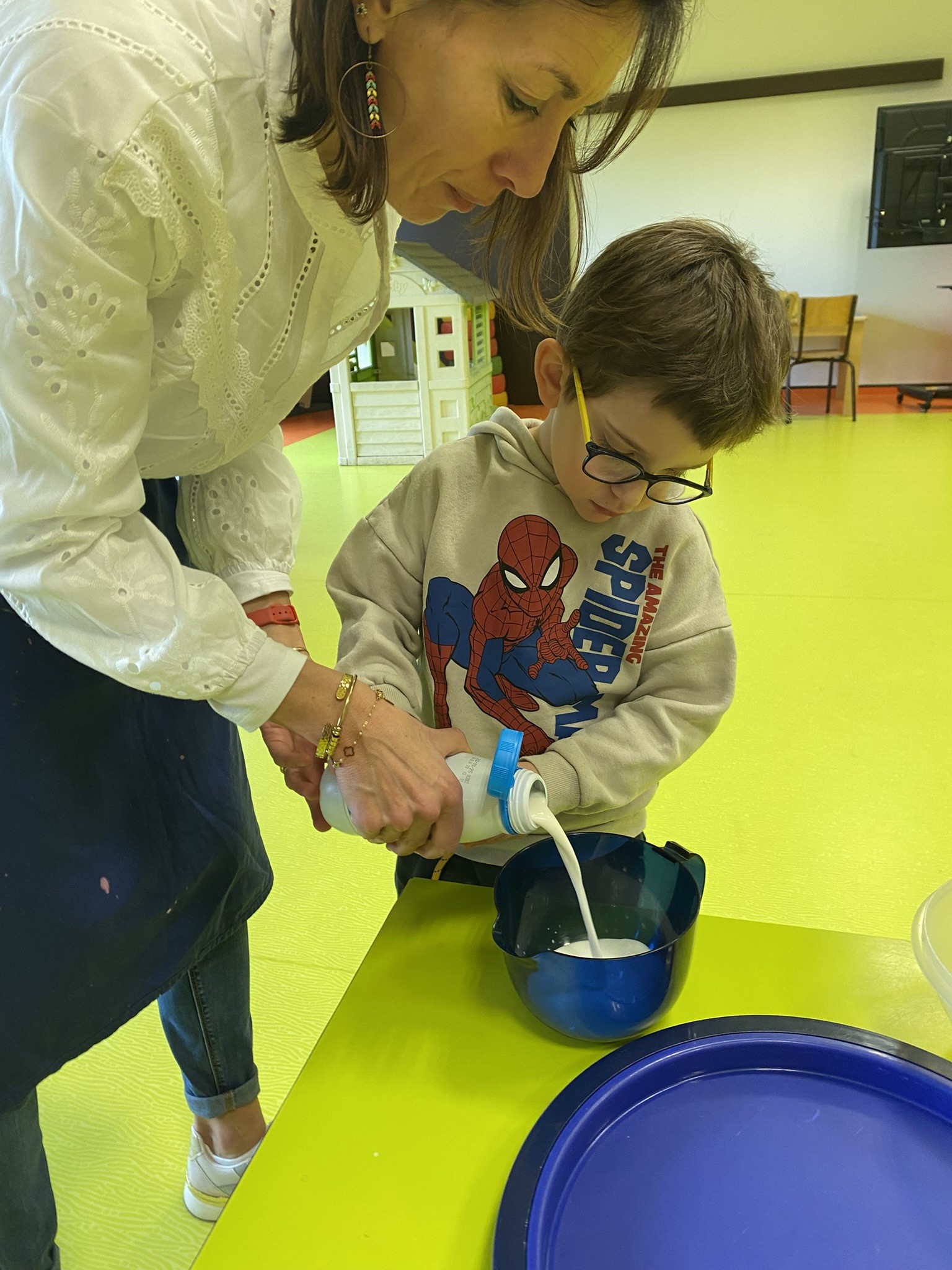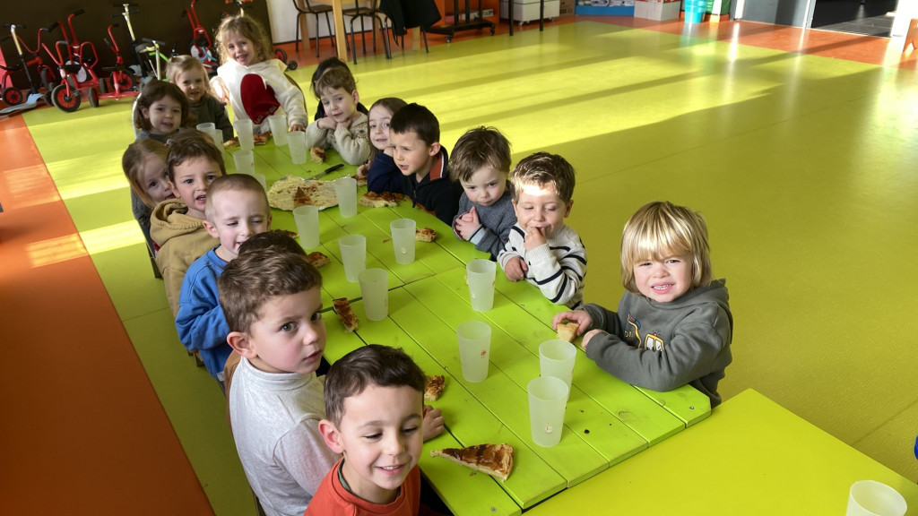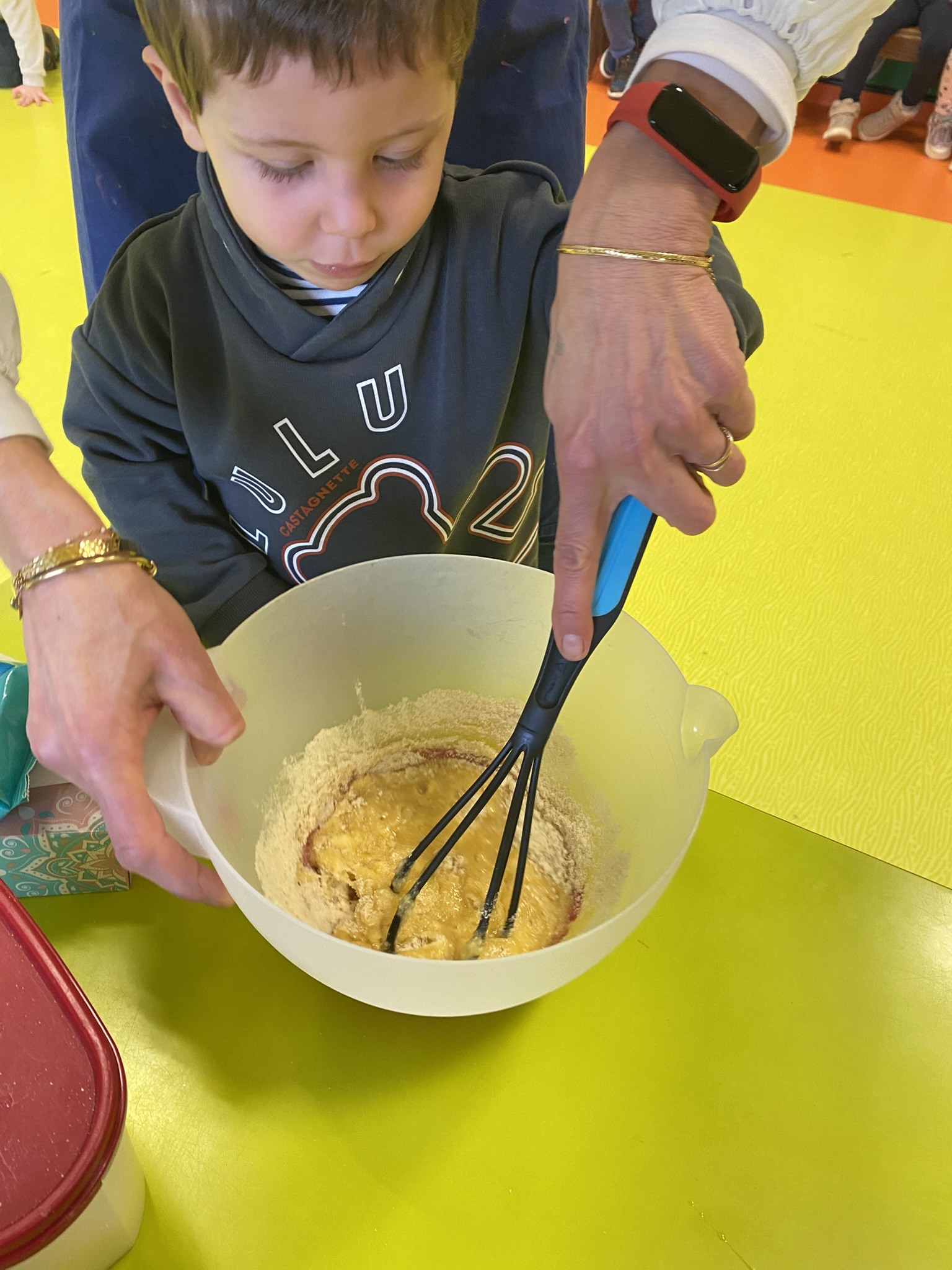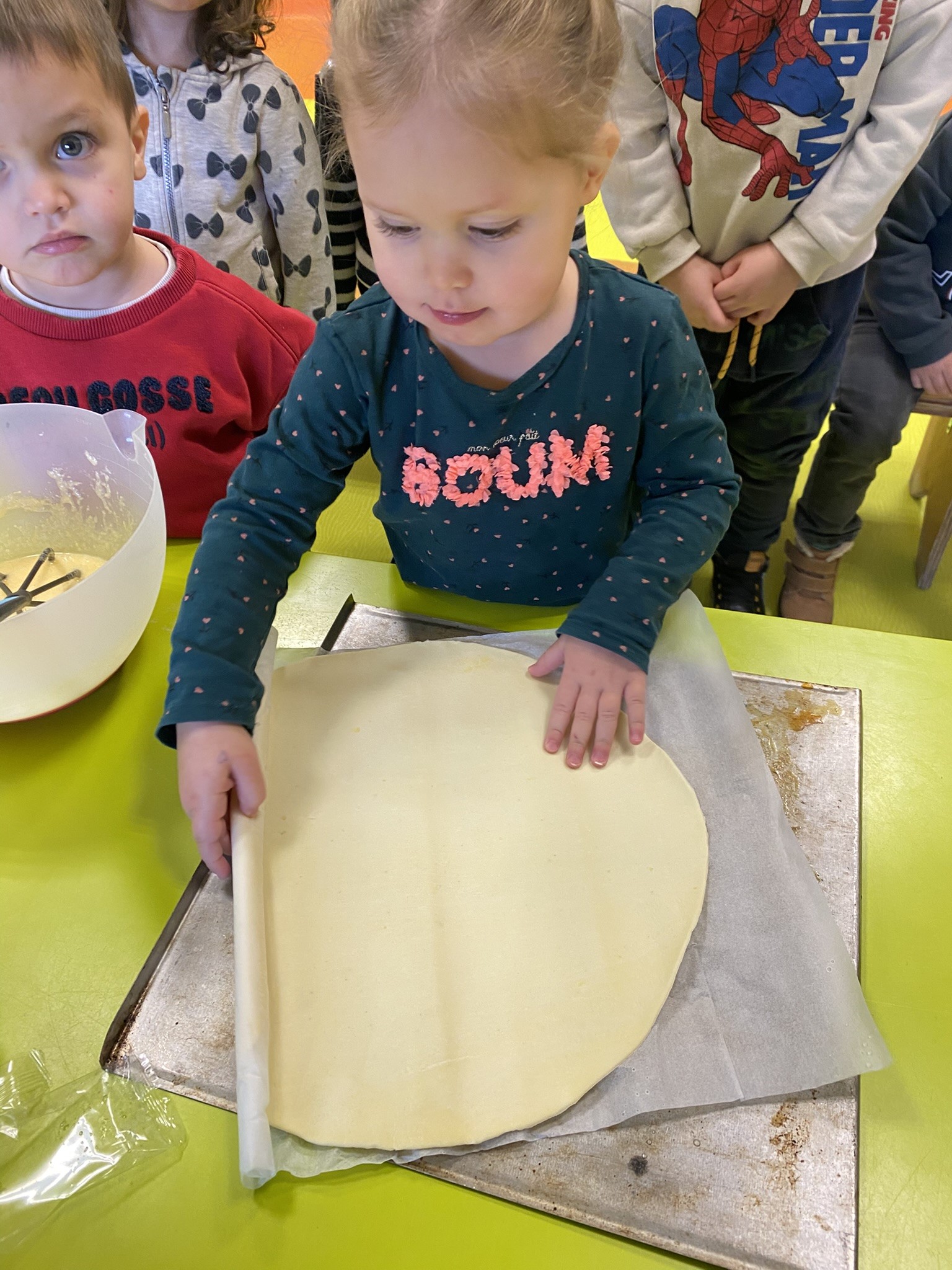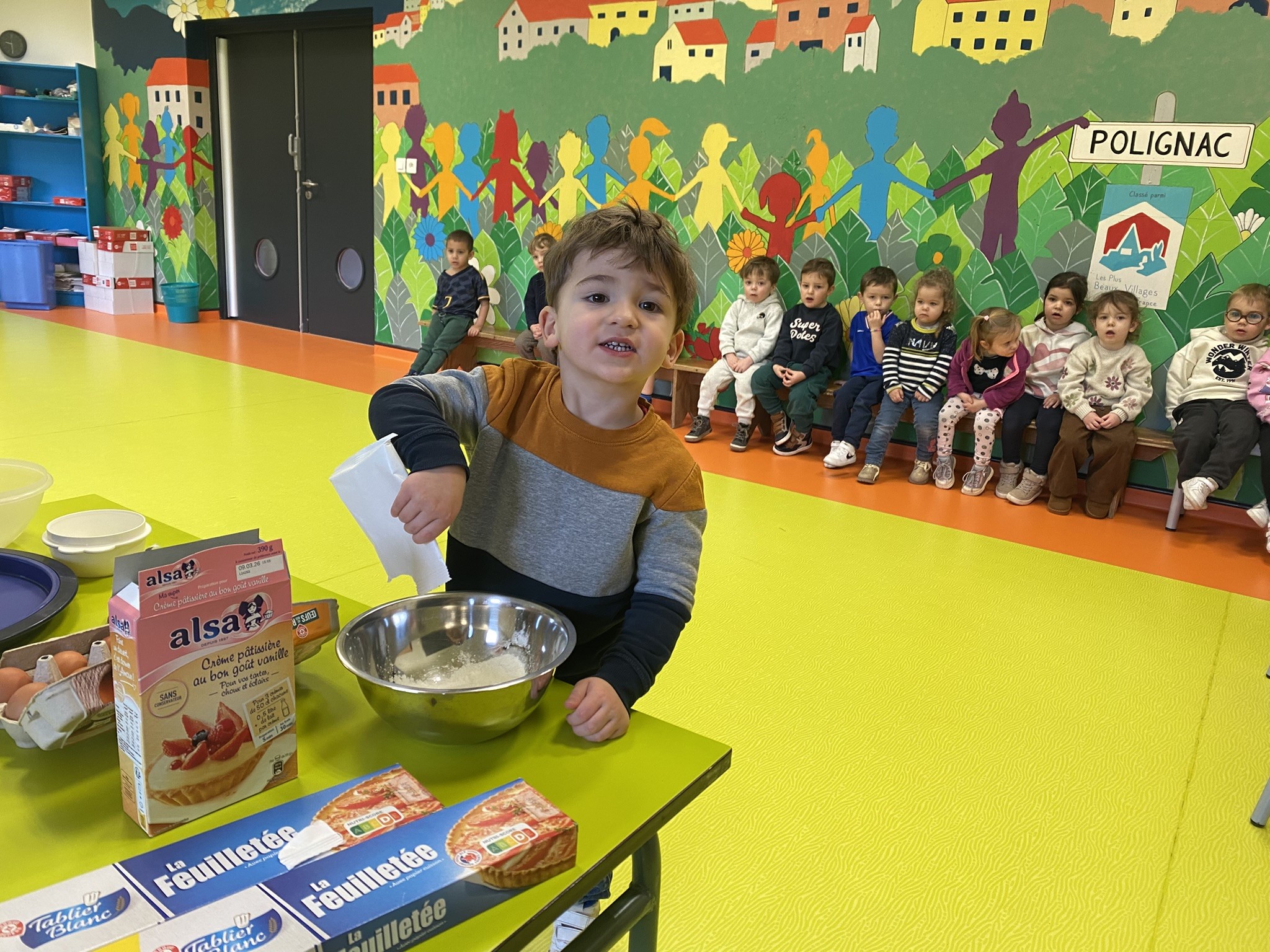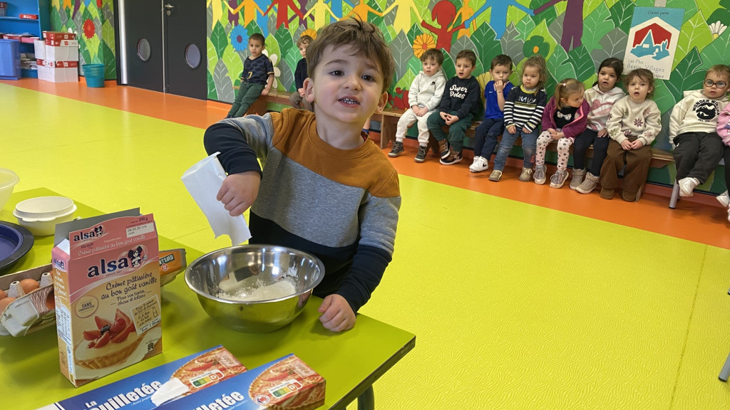 En ce début d'année 2025, les élèves de TPS PS MS se sont lancés dans la préparation de galettes des rois. De la préparation des ingrédients jusqu'à l'assemblage et la dégustation les élèves étaient ravis de participer à ce temps de l'épiphanie. Cette activité a été l'occasion de travailler le langage oral notamment en révisant le vocabulaire des ustensiles de cuisine et des ingrédients, mais également de partager un moment convivial avec notamment la découverte de la fève.