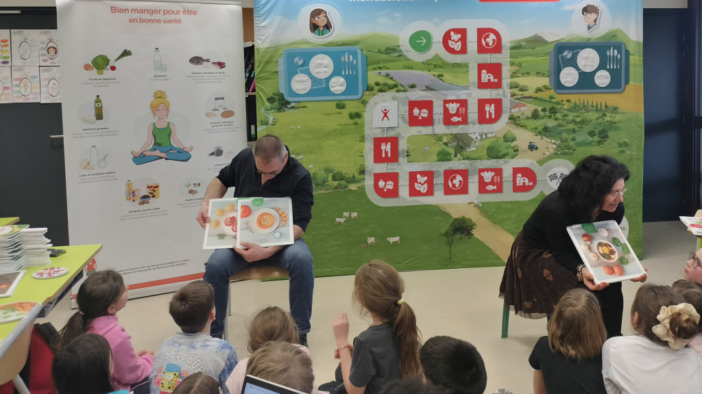 Fin janvier, les élèves de la classe de CE et de CM ont accueilli 2 intervenantes de "Mon assiette Ma planète qui leur ont proposés des animations autour de bien manger pour être en bonne santé. Les élèves ont pu rencontré un professionnel, un éleveur de la de la filière bovine proche de l'école basé à Blanzac.