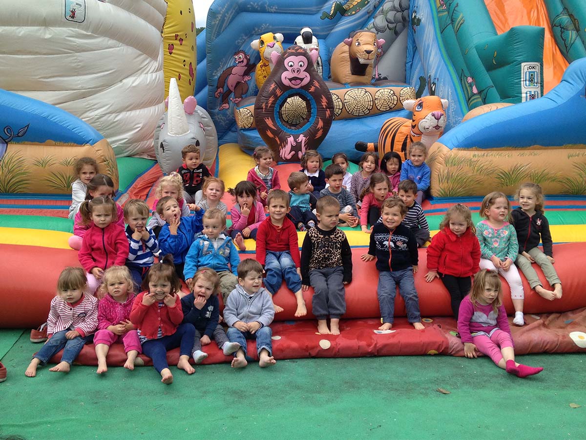 Pour clôturer l’année dans la joie et la bonne humeur, la classe des maternelles s’est déplacée aux jeux gonflables « Planet Air » de Brives Charensac. Les enfants étaient très excités ce vendredi 17 juin.. Par chance, la météo a été clémente et tous ont profité largement des différents jeux proposés : piscine à balles, toboggan, petits engins et jeux rebondissant.