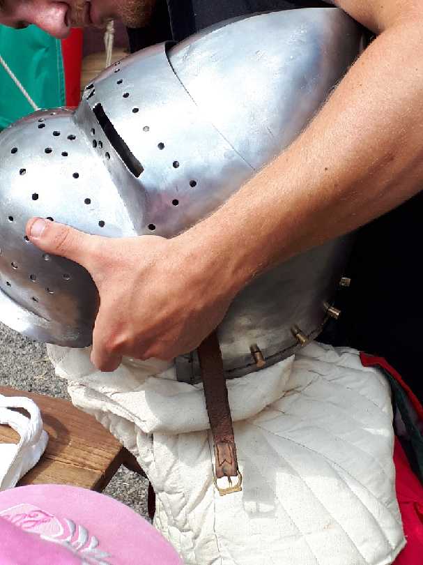 Au gré de la visite, ils ont vu les imposantes armures de chevalier et leur casque en métal appelé « armet » pour se protéger de l’ennemi.