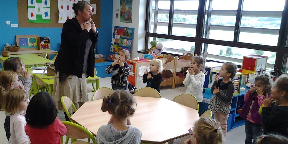 Chez les CE-CM, à compter de deux heures par semaine, les élèves essaient de maîtriser du vocabulaire et osent prendre la parole. Le but est d’échanger et d’arriver petit à petit à répondre à des questions , à effectuer quelques dialogues.